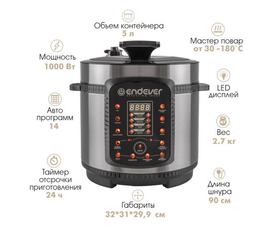 Скороварка-мультиварка электрическая Endever Vita-99 черный/стальной