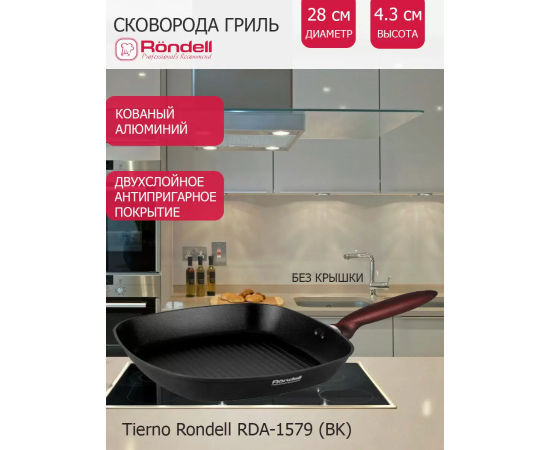 Сковорода-гриль Rondell Tierno RDA-1579 28см черный без крышки
