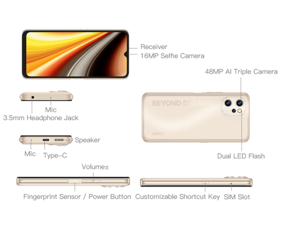 Смартфон UMIDIGI Power 7 Max 6/128Gb Sunbeam Gold, 6.7"HD/Unisoc T610/48+8+5MP/16MP/NFC/4G/And11/10000 mAh