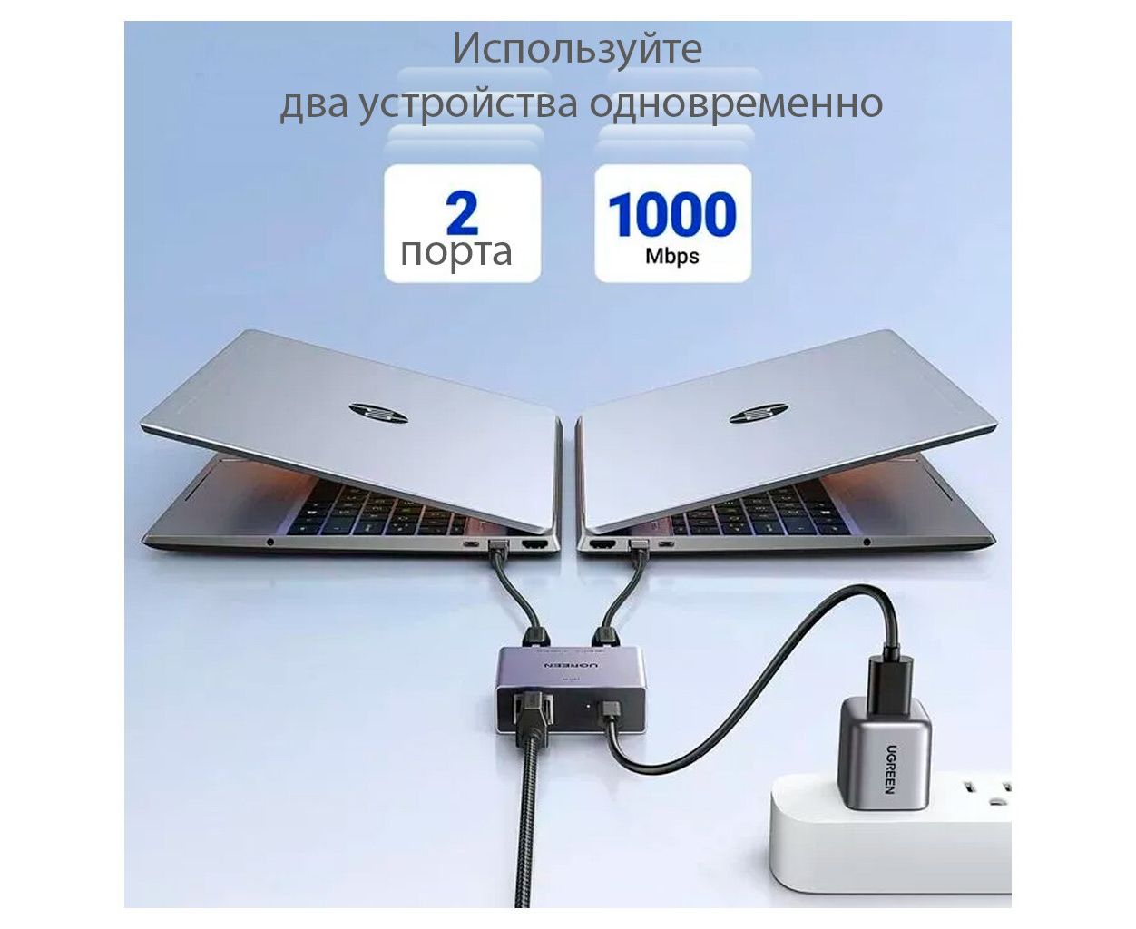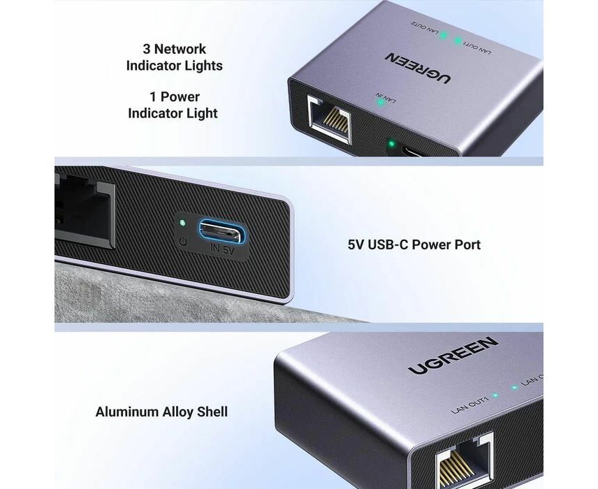Сплиттер UGREEN NW301 (45311) Gigabit Ethernet Splitter 1 to 2 Gray