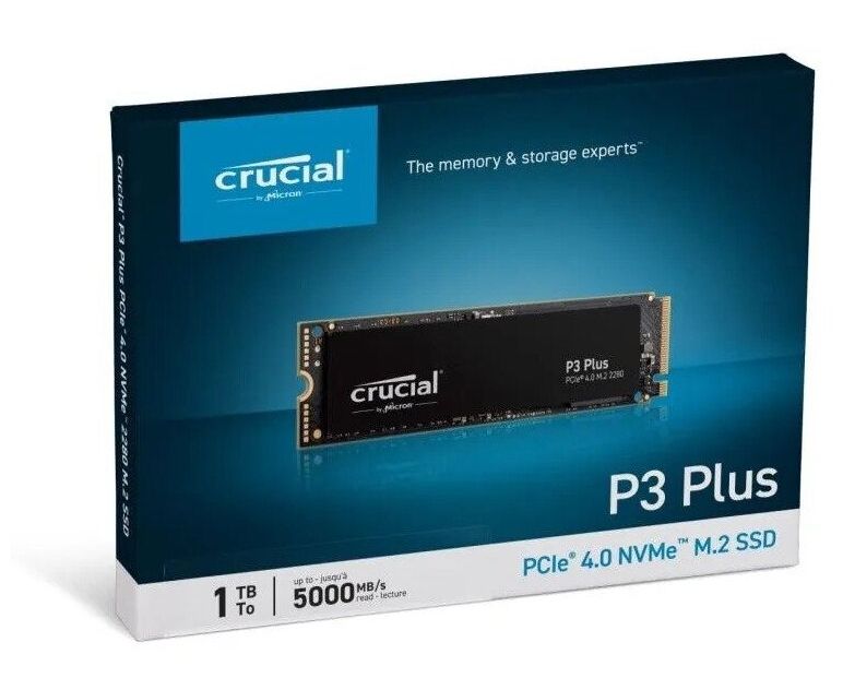 SSD Crucial P3 Plus (CT1000P3PSSD8) M.2 1.0Tb (PCI-E 4.0 x4, up to 5000/3600MBs, 3D NAND, NVMe, 220TBW, 22х80mm)