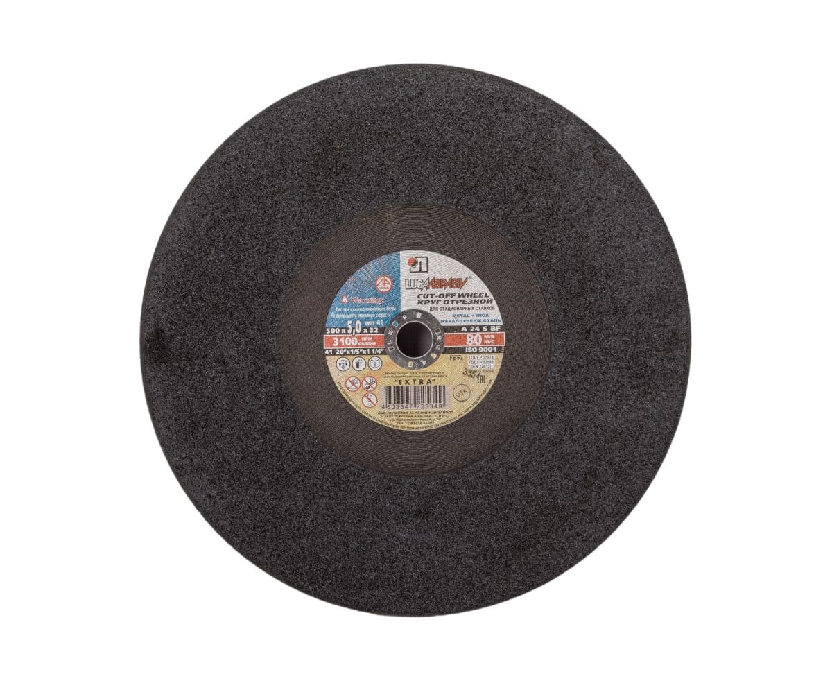 Стационарный круг отезной по металлу Luga-Abrasiv 4603347225349 (D11005003250000) 500х5х32 A 24 S BF 14А БУ 80 2
