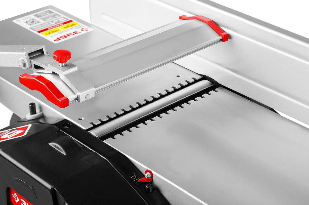 Комплектация: Станок; Параллельный упор с креплением; Защитная планка с кронштейном; Пылесборник; Рукоятка; Фиксатор; Шаблон для установки ножей; Толкатель; Прижим - 2шт.; Набор ключей; Резиновая опора - 4шт.; Набор крепежа