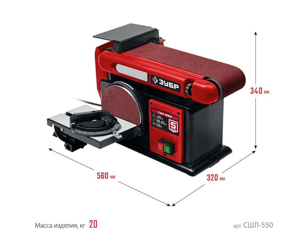 Технические характеристики станка шлифовального ЗУБР СШЛ-550