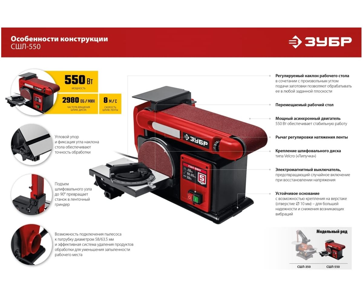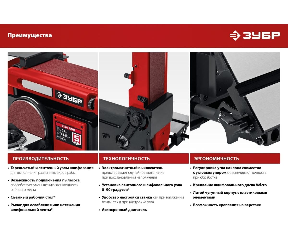 Преимущества станка шлифовального ЗУБР СШЛ-550