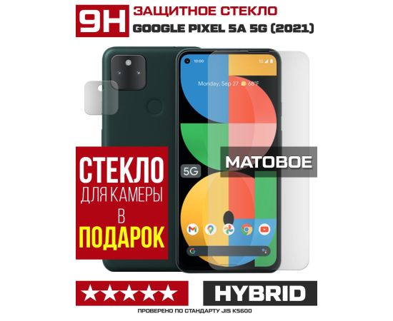 Стекло защитное гибридное МАТОВОЕ Krutoff для Google Pixel 5a 5G (2021) + защита камеры (2 шт.)