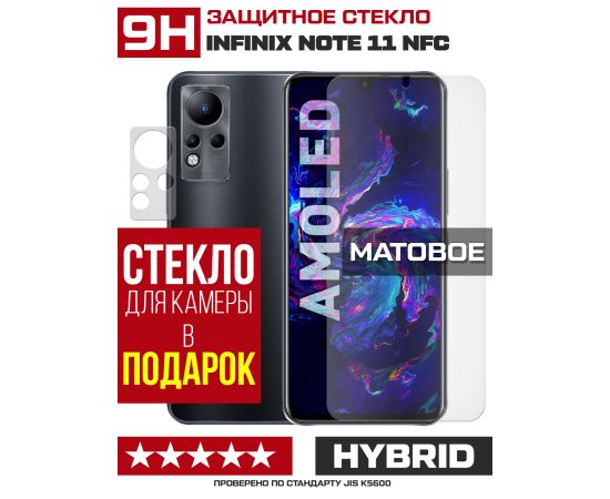 Стекло защитное гибридное МАТОВОЕ Krutoff для INFINIX Note 11 NFC + защита камеры (2 шт.)