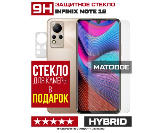 Стекло защитное гибридное МАТОВОЕ Krutoff для INFINIX Note 12 + защита камеры (2 шт.)