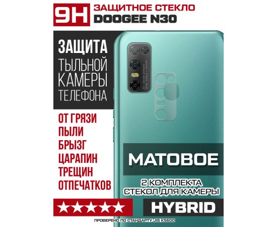Стекло защитное гибридное МАТОВОЕ Krutoff для камеры Doogee N30 (2 шт.)
