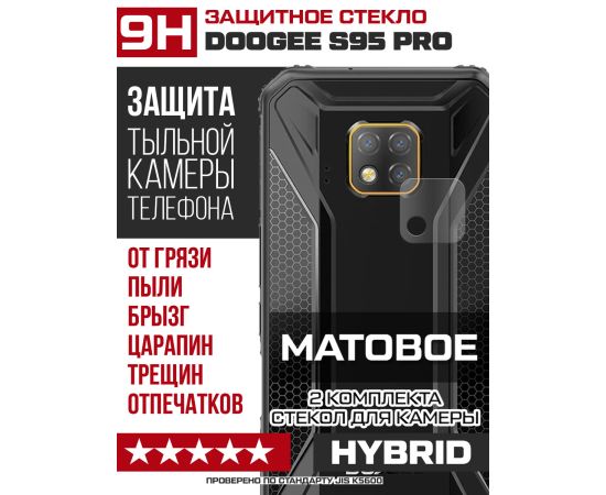 Стекло защитное гибридное МАТОВОЕ Krutoff для камеры Doogee S95 Pro (2 шт.)