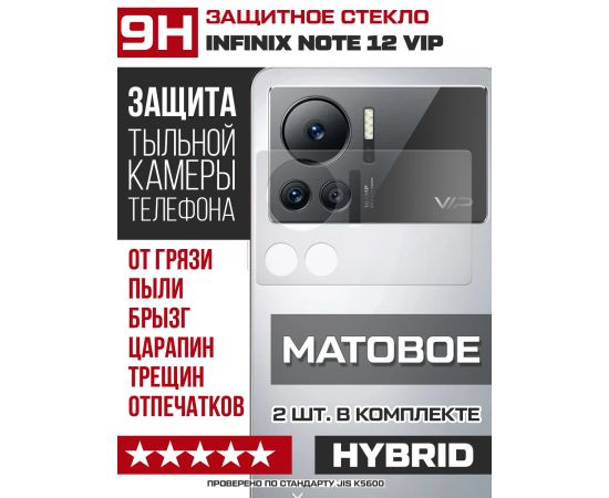 Стекло защитное гибридное МАТОВОЕ Krutoff для камеры INFINIX Note 12 VIP (2 шт.)
