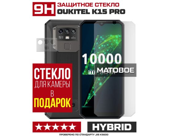 Стекло защитное гибридное МАТОВОЕ Krutoff для Oukitel K15 Pro + защита камеры (2 шт.)