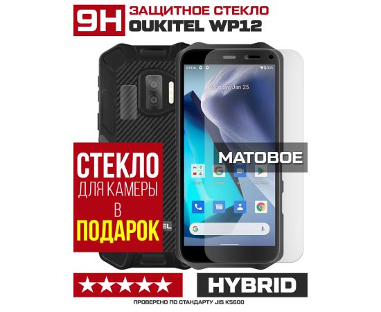 Стекло защитное гибридное МАТОВОЕ Krutoff для Oukitel WP12 + защита камеры (2 шт.)