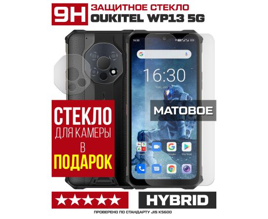 Стекло защитное гибридное МАТОВОЕ Krutoff для Oukitel WP13 5G + защита камеры (2 шт.)