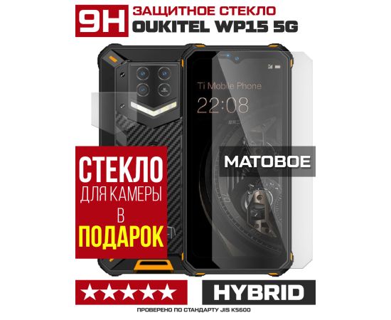 Стекло защитное гибридное МАТОВОЕ Krutoff для Oukitel WP15 5G + защита камеры (2 шт.)