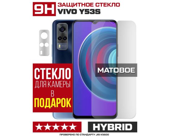 Стекло защитное гибридное МАТОВОЕ Krutoff для Vivo Y53s + защита камеры (2 шт.)