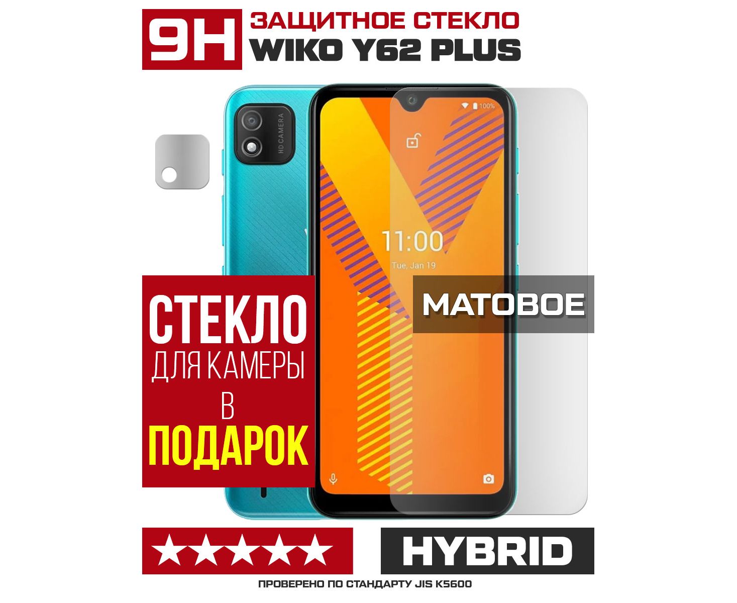 Стекло защитное гибридное МАТОВОЕ Krutoff для Wiko Y62 Plus + защита камеры (2 шт.)