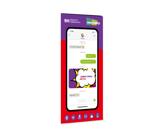 More choice - настоящий друг и товарищ для вашего iPhone. Закалённое стекло премиального качества отлично защитит дисплей смартфона от царапин и даже повреждений при падении. Стекло ультратонкое, поэтому вы даже не почувствуете его присутствие на смартфоне. Также стекло совершенно не искажает HD изображение на экране и не препятствует отклику сенсора.