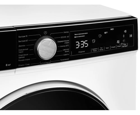 Программы стирки: Быстрая стирка, Отжим, Стирка изделий из хлопка, Стирка спортивной одежды, Стирка детской одежды, Стирка изделий из джинсовой ткани, Полоскание, Стирка изделий из шерсти, Ручная стирка, Слив, Цветное белье, Экономичная стирка