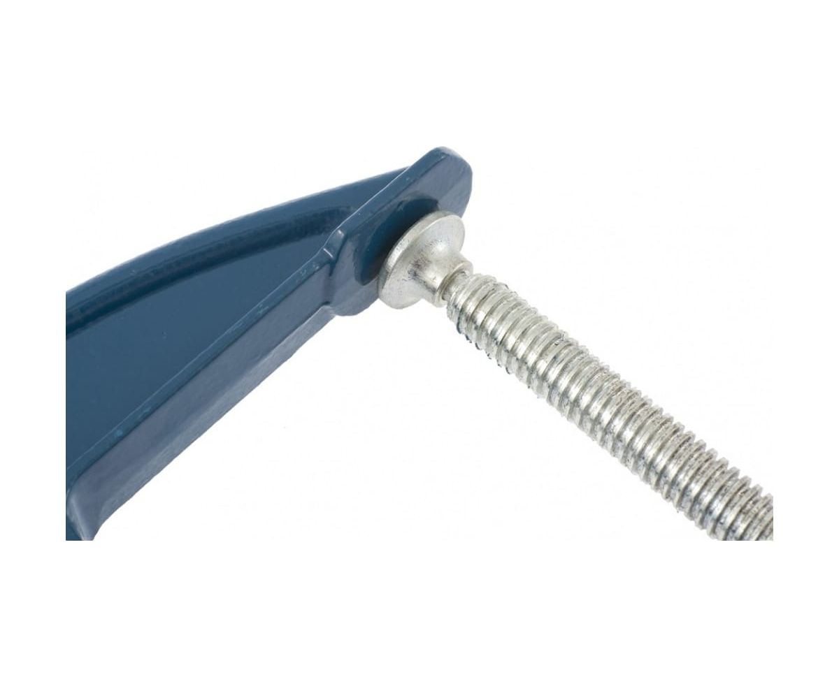 G-образная струбцина применяется для фиксации заготовок с целью их склеивания, а также для крепления к верстаку или станку для опиливания, сверления и другой обработки.