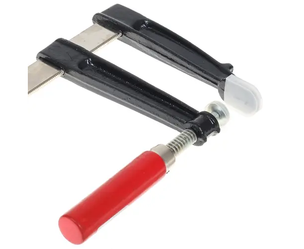 Струбцина имеет деревянную рукоятку, а также губки с накладками для защиты обрабатываемых предметов от повреждений. Струбцина предназначена для фиксации деталей при обработке и сборке.