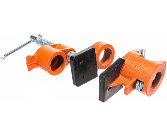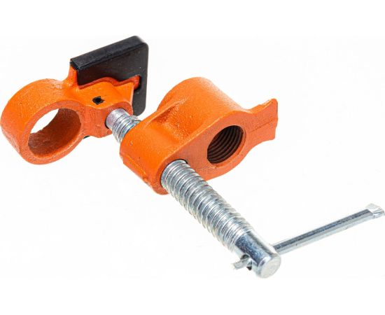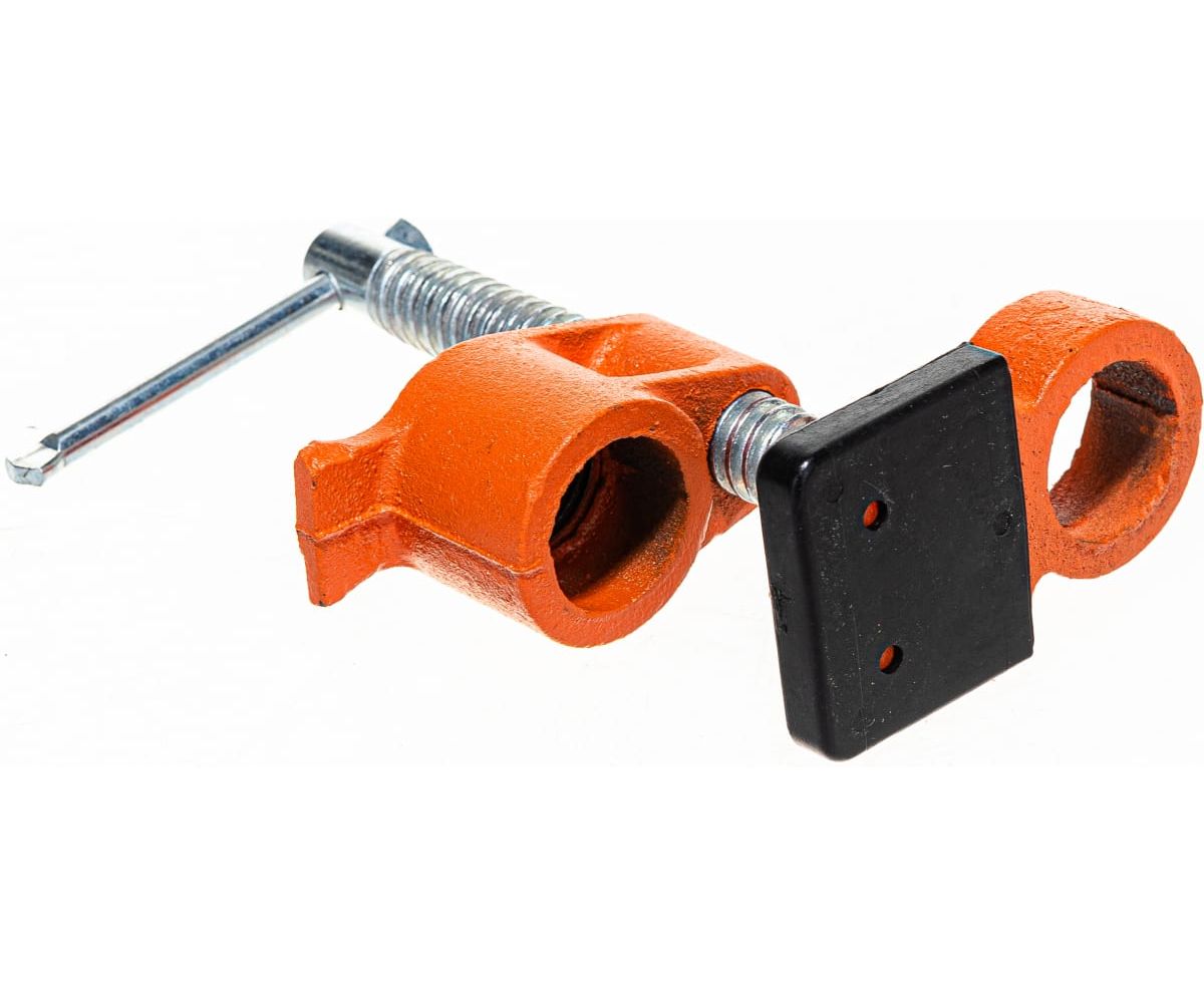 Трубная струбцина предназначена для зажима металлических труб диаметром 1/2 дюйма. Прочная резьба затяжного винта имеет крупный шаг, что позволяет быстро зажать заготовку.