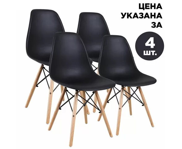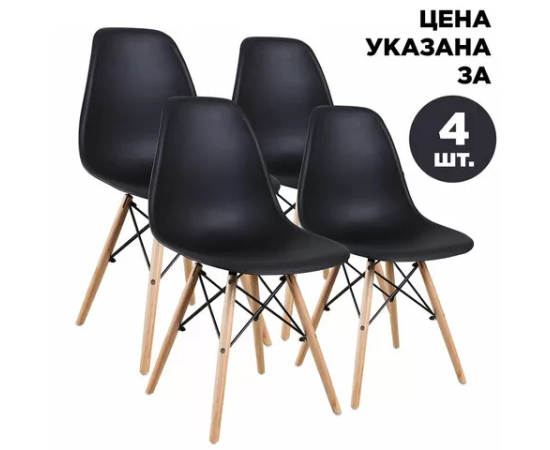 тулья BRABIX "Eames CF-010", КОМПЛЕКТ 4 шт., пластик черный, опоры дерево/металл