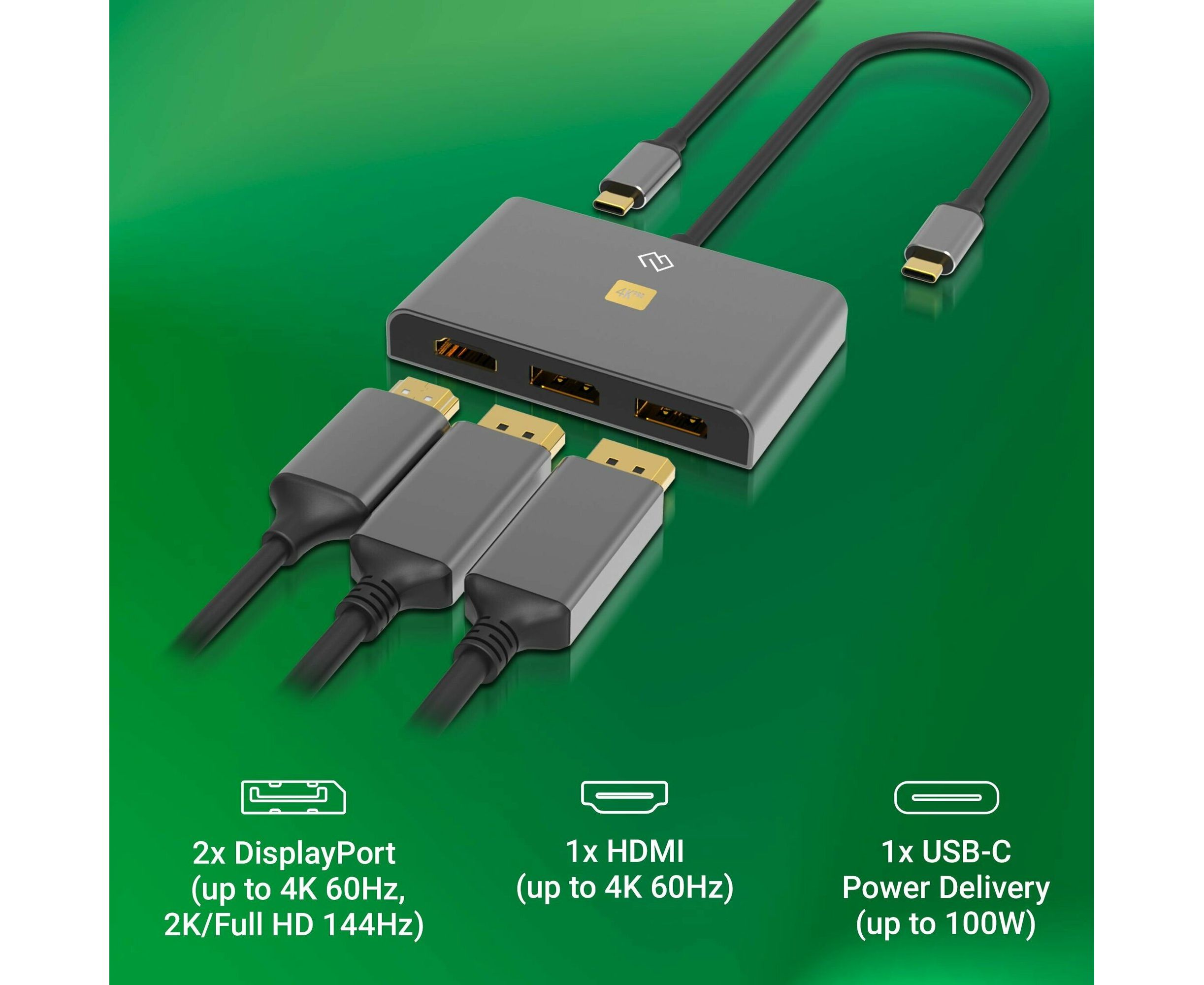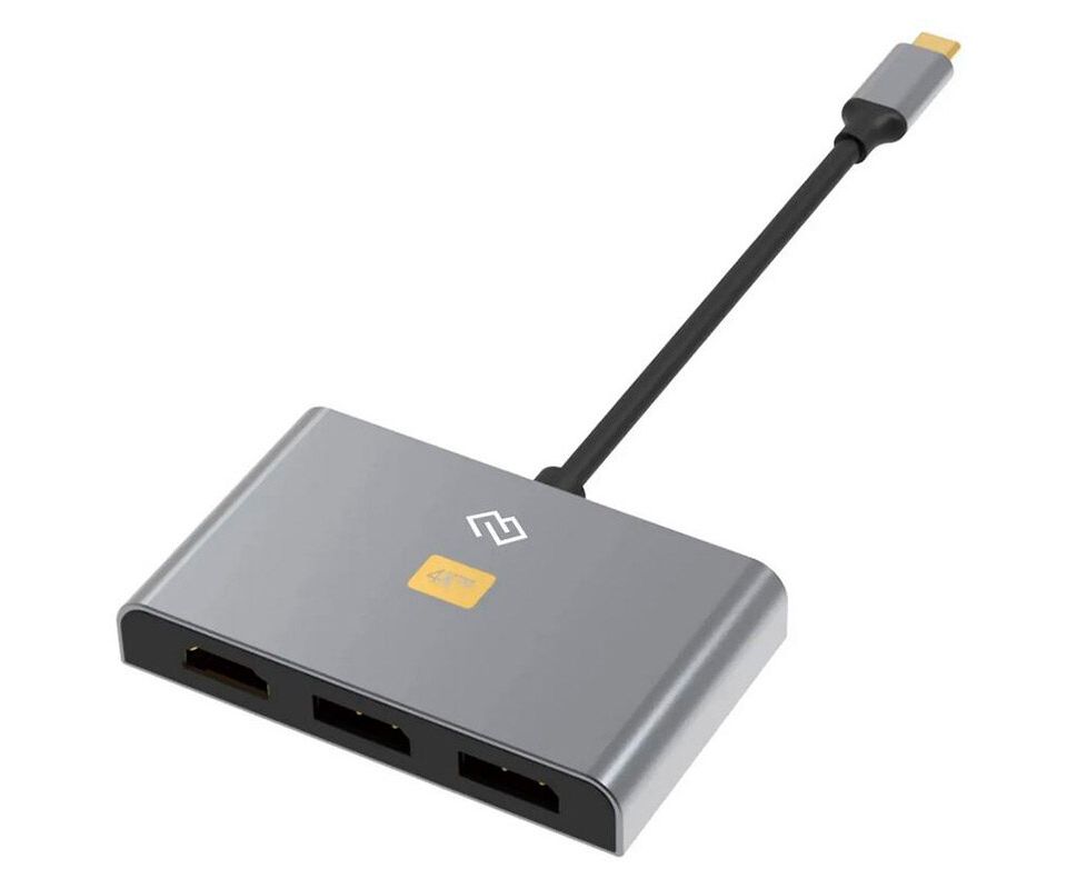 Type-C док-станция DIGMA, 4 порта - 2x DisplayPort ( 4K@60Hz, 2K/FULLHD@144Hz), 1x HDMI: up to 4K@60Hz, 1x USB-C PD (up to 100W)