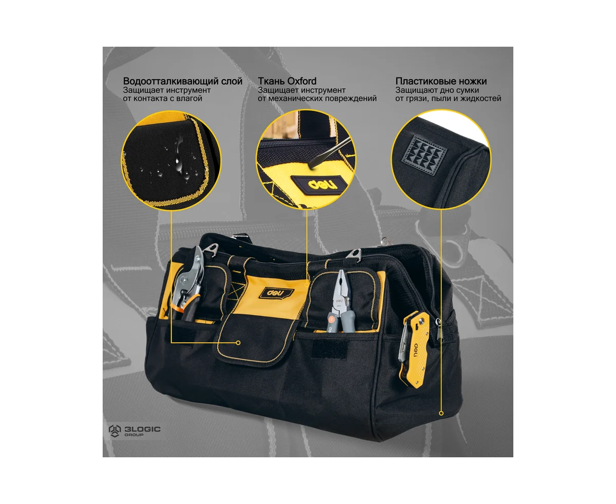 Сумка для инструментов Deli DL430117 400x200x270мм, 14 карманов, плечевой ремень, ткань Оксфорд