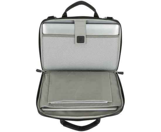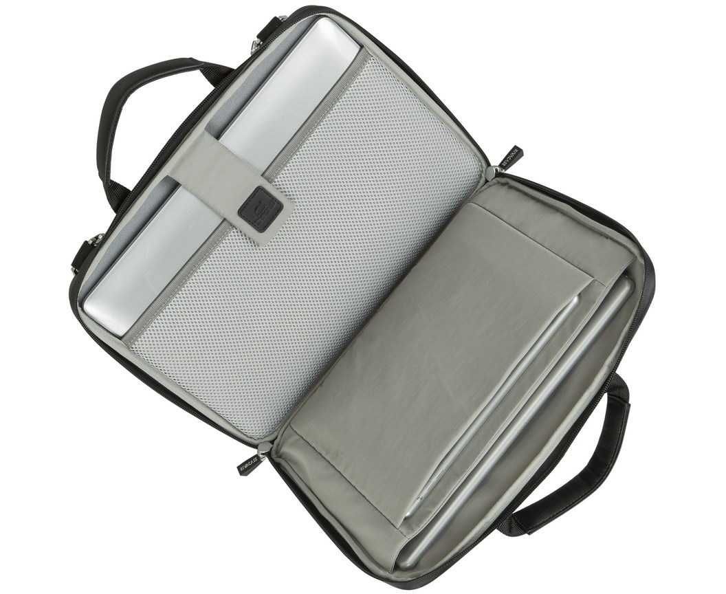 Выполнен из высококачественной искусственной кожи и полиэстера, задняя панель из прочного материала EVA с водостойкой молнией. Внешний карман на молнии для аксессуаров, смартфона и документов. Внутреннее пространство разделено на отделение для ноутбука, для документов и карман для 10.1 планшета.