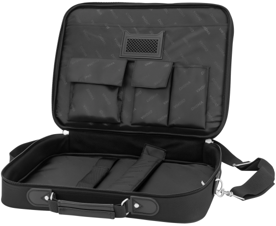 Удобная сумка классического дизайна для ноутбуков с экраном 15,4 дюйма. В основном отделении предусмотрены съемная перегородка и специальный ремешок для плотной фиксации внутри. Также внутри есть несколько полезных отделений для принадлежностей и личных вещей.