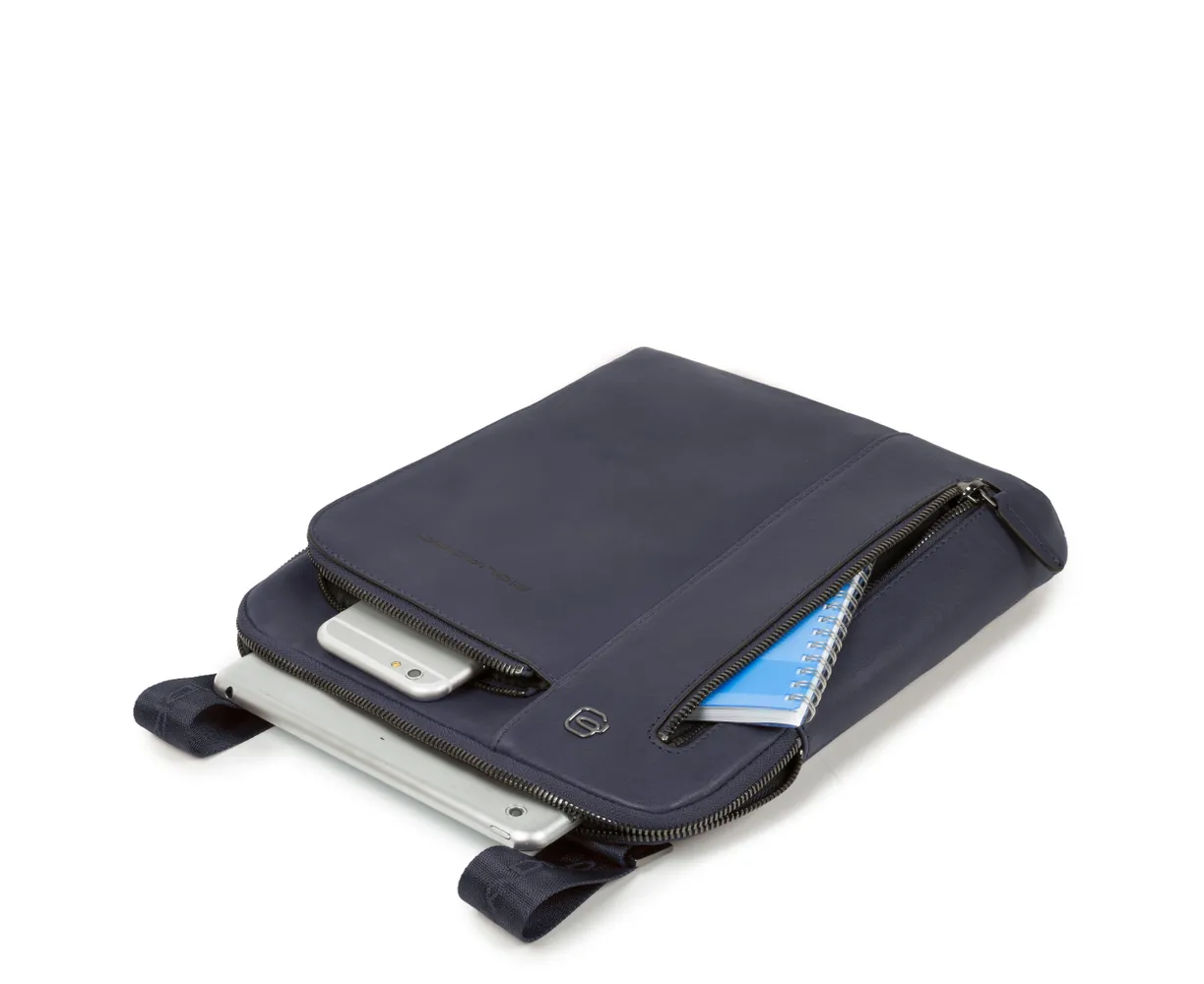 Сумка мужская через плечо Piquadro Black Square изготовлена из натуральной телячьей кожи. Мужская сумка планшет вмещает в себя необходимые документы, кошелек, паспорт, ключи, смартфон, наушники и другие мелочи. Плоская кожаная сумка идеально подходит для повседневного использования. Сумка мужская для документов имеет три отделения на молнии. Плечевой ремень не съемный. Каждое изделие итальянского бренда Piquadro упаковано в фирменный мешок-пыльник, а также в фирменную плотную картонную коробку.