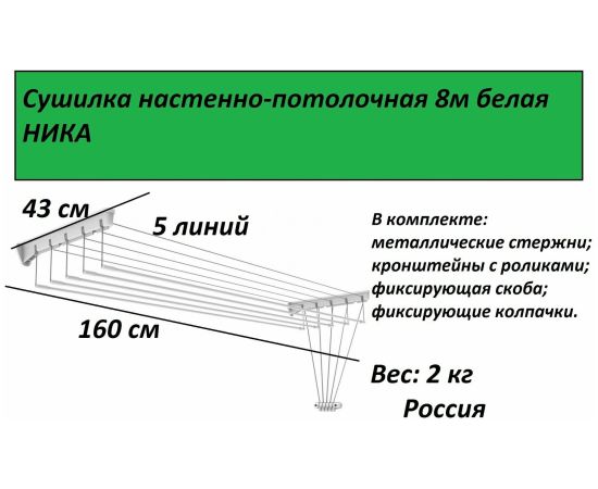 Настенно-потолочная сушилка Nika 8м СНП 1.6 белая НИКА-СНП1.6/БЕЛАЯ предназначена для сушки белья в помещении.