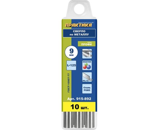 Сверла по металлу ПРАКТИКА 915-892 9,0 x 125 мм (10 шт) пластиковая коробка