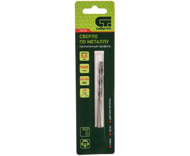 Сверло по металлу СИБРТЕХ 72218 5,0 мм, Р6М5