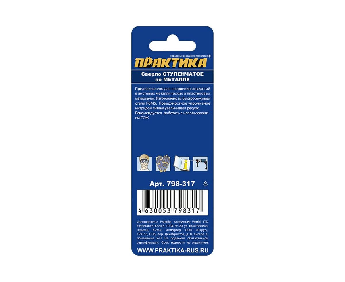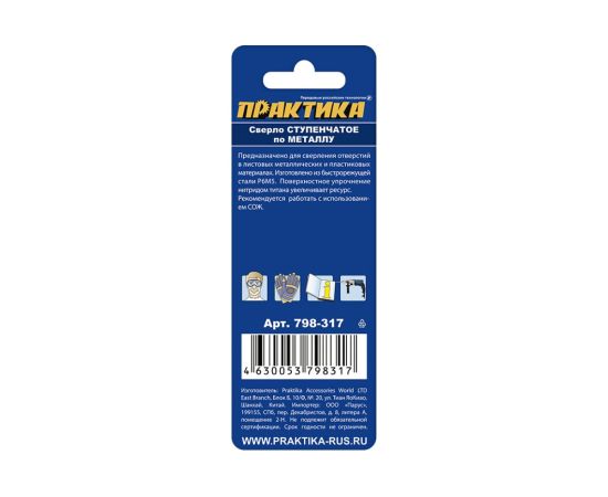 Технические характеристики ступенчатого сверла по металлу ПРАКТИКА 798-317