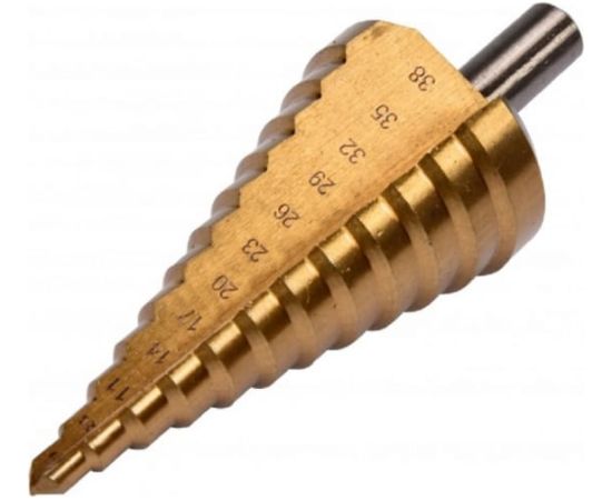 Сверло по металлу ступенчатое 6-38 мм YATO YT-44740 изготовлено из быстрорежущей стали HSS 4241 и покрыто нитридом титана.