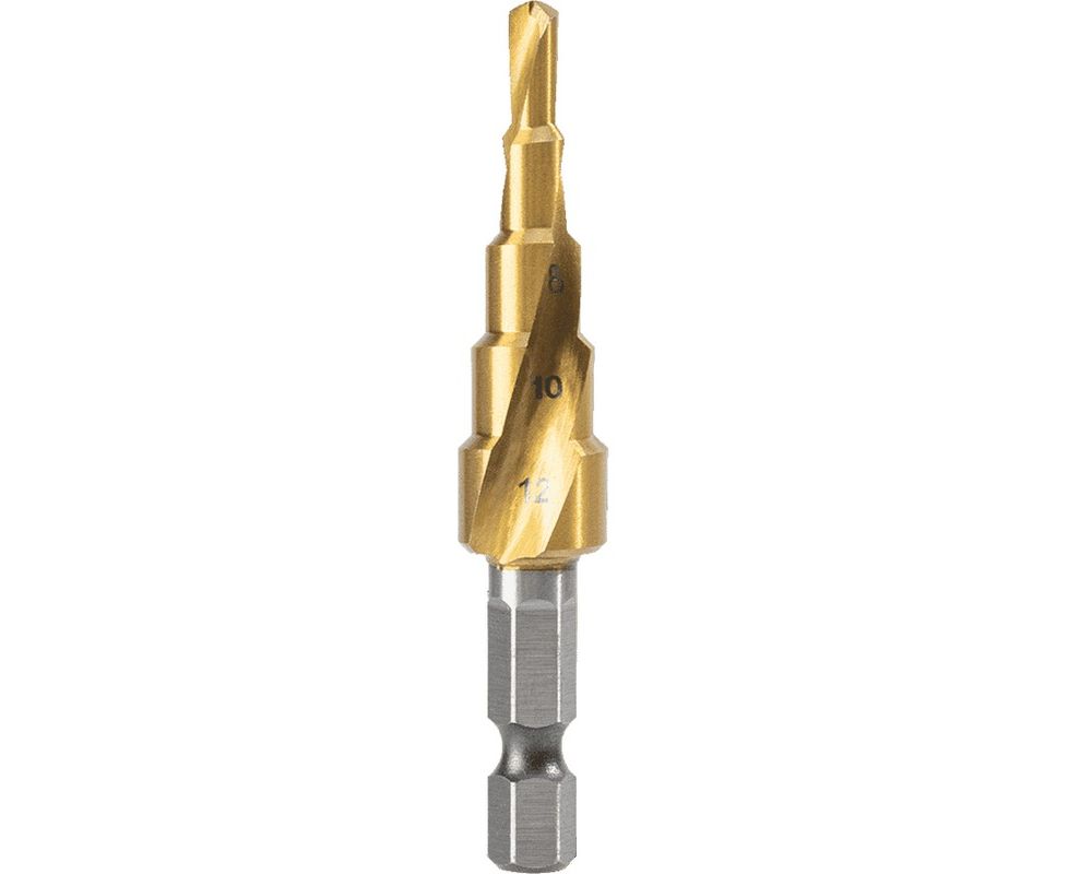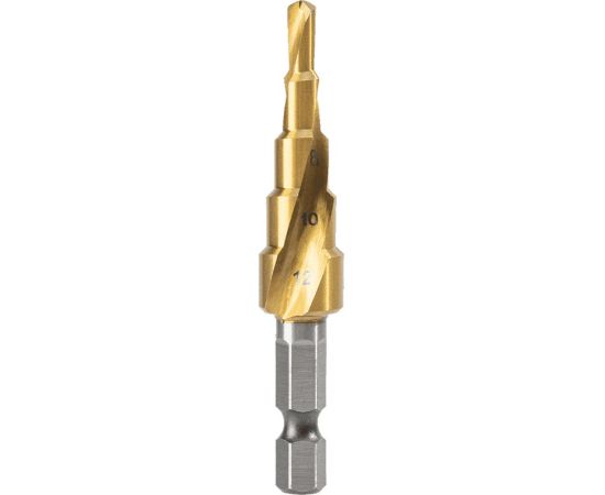 Сверло ступенчатое по металлу Deli DH-JTZ012-E2 4-12мм, HSS M2, спиральная канавка, шестигранный хвостовик