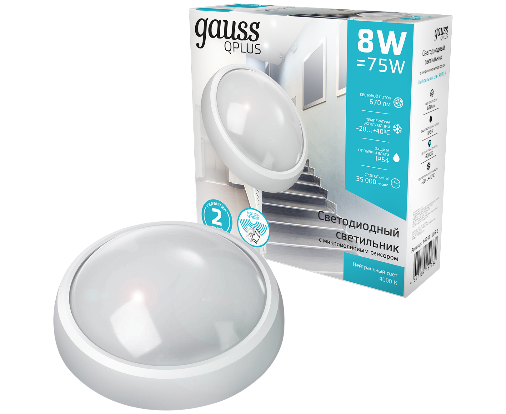 Светильник Gauss ЖКХ 142411208-S 8Вт 4000K белый опал датч.движения