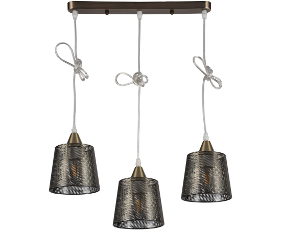 Подвесной светильник Wink H229-3 от английской фабрики Hiper украсит гостиную, прихожую и коридор, спальню, кухню, зону над обеденным столом и кухонным островом, кабинет, зал в стиле современный, кантри, лофт. Материал изготовления — металл, цвет бронза. 3 плафона из металла с цоколем E27 и мощностью ламп 180W, площадь освещения составляет до 9 кв. м. Питание от сети 220V. Технические особенности: регулировка высоты. Монтаж производится на пластину. Габариты: длина — 50 см, ширина — 13 см, высота — 12 см.