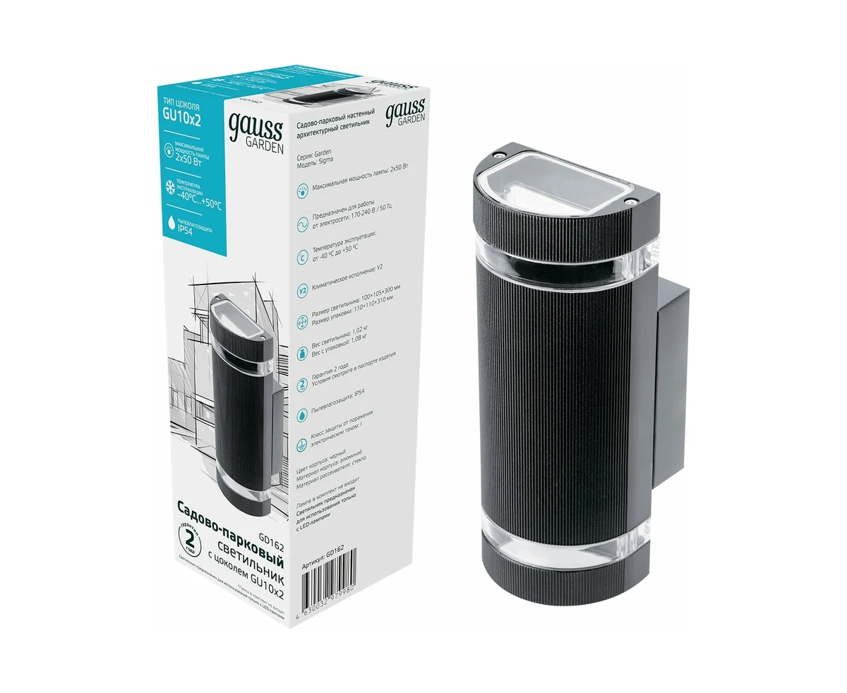 Технические характеристики Gauss Enigma 2xGU10, 100х105х300мм GD162