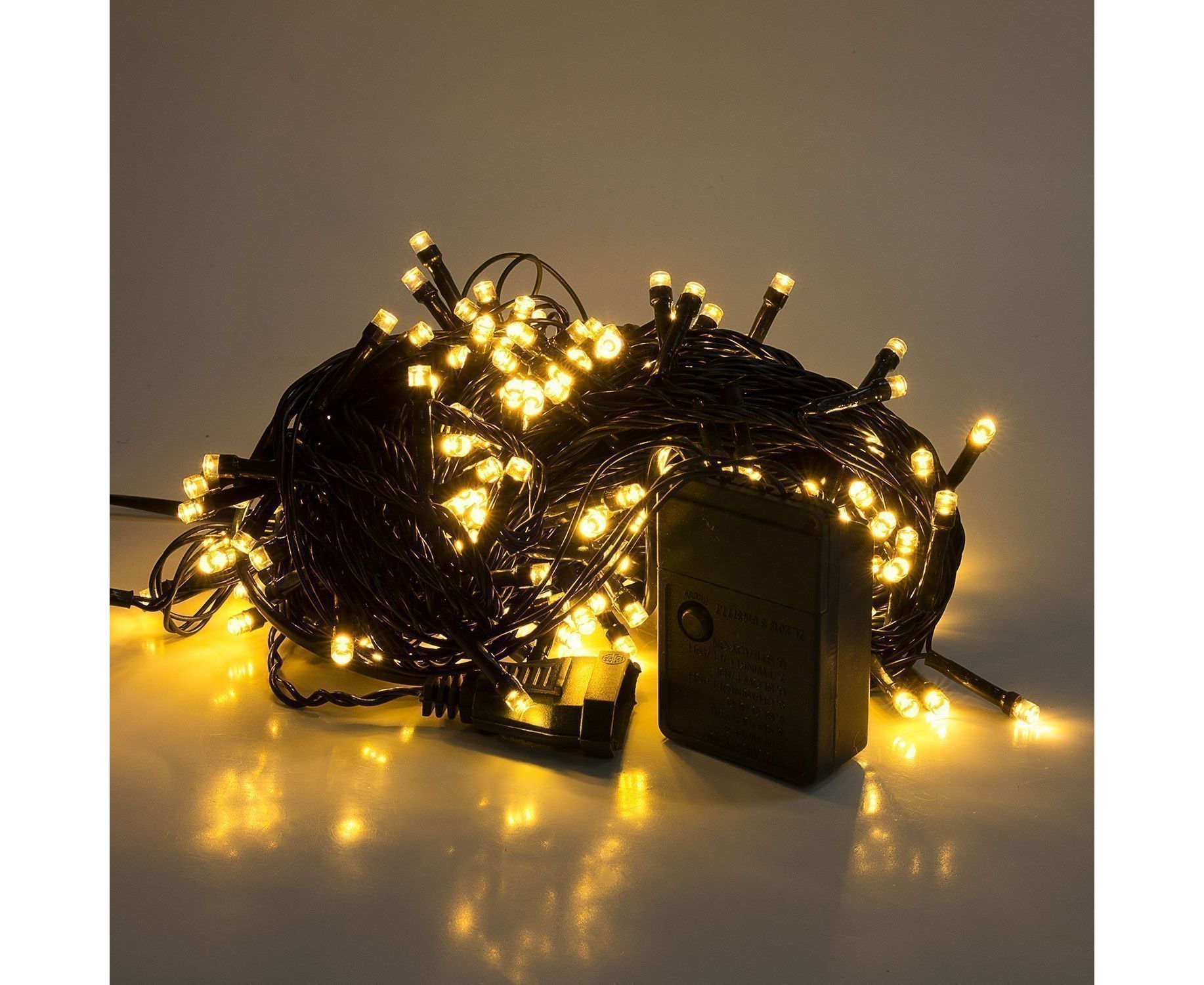 Светодиодная гирлянда внутренняя нить 20 метров, 200 диодов, белый теплый (черный провод) (132731)