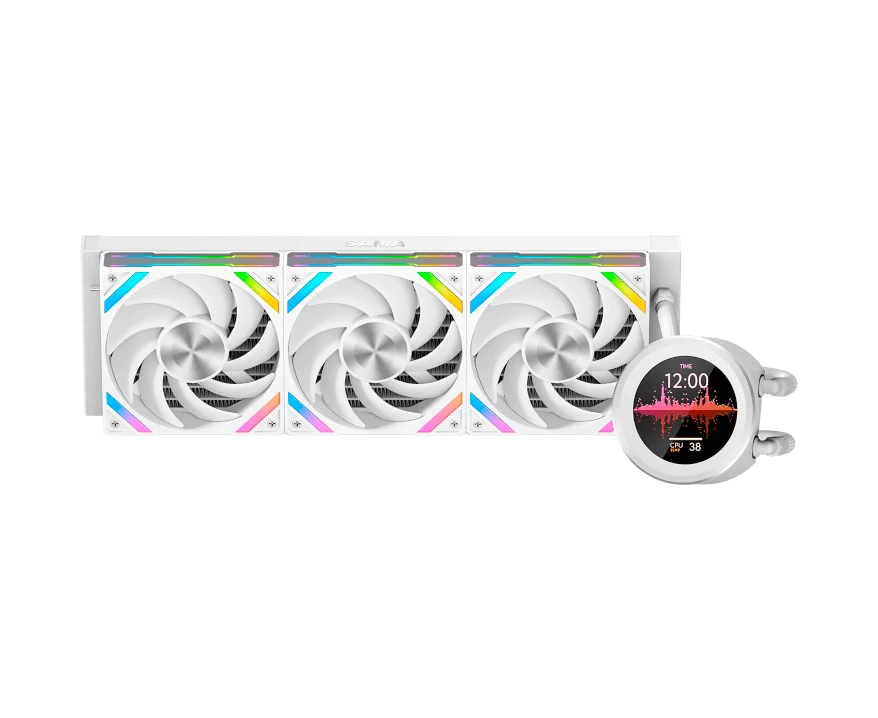 СВО SAMA Q60 (Q60-WHWANNO3-G) White (360mm, LED temp., ARGB/ Fans 3x120mm, 86CFM, 30dBA, 2600RPM)
