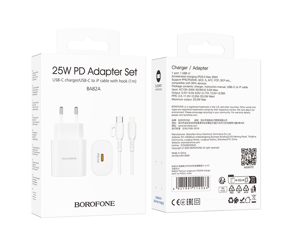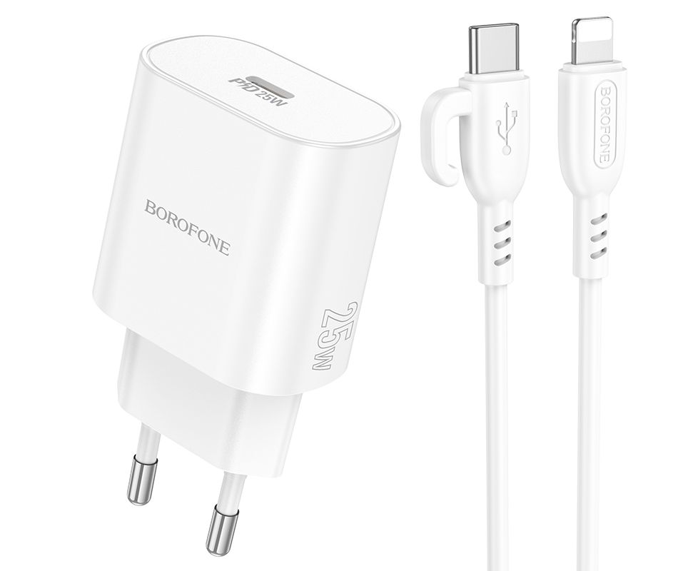 СЗУ 1Type-C 3.0A QC3.0 PD 25W быстрая зарядка для Lightning 8-pin Type-C Borofone BA82A (White)