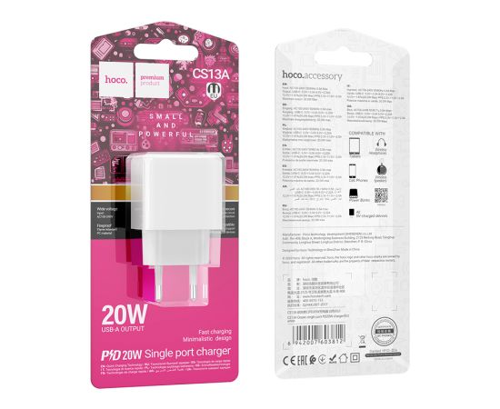 Сетевое зарядное устройство Hoco CS13A обладает небольшими размерами, что делает его незаменимым устройством в путешествиях. Защита от перегрузки и короткого замыкания помогает обезопасить заряжаемое устройство в случае возникновения каких-либо проблем при зарядке. Заряжайте абсолютно любое устройство с помощью надежного дата-кабеля в комплекте.