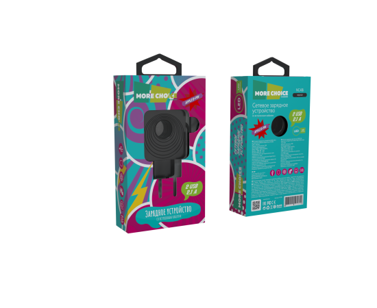 СЗУ 2USB 2.1A для Lightning 8-pin со встроенным кабелем и LED подсветкой More choice NC48i (Black)