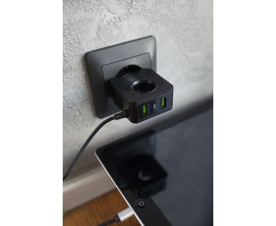 Материал: АВС-пластик Количество разъемов USB: 2 Вход: 100В/240В. Максимальный выходной ток: 2.1 A Кабель: встроенный Lightning 8-pin (1 м) Комплектация: сетевое зарядное устройство, держатель для кабеля, буклет Цвета: Black, White