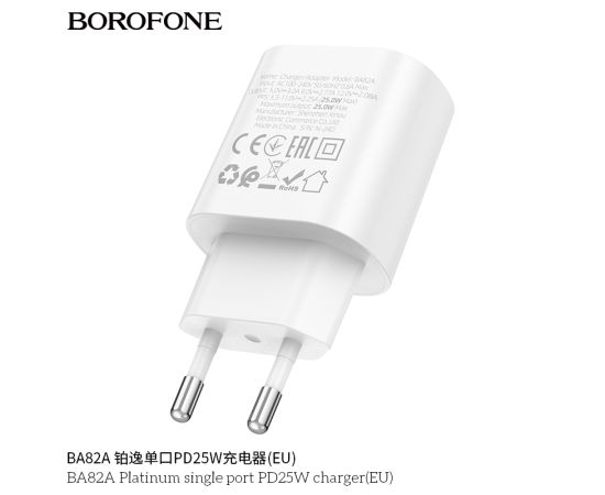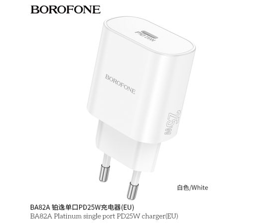 СЗУ BOROFONE BA82A Platinum single port PD25W charger(EU) (белый)