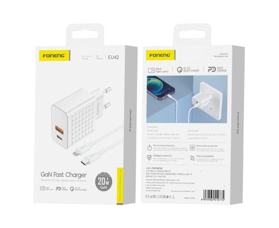 СЗУ Foneng EU42 GaN QC 3.0 + PD20W (Type-C to Lightning) (White)