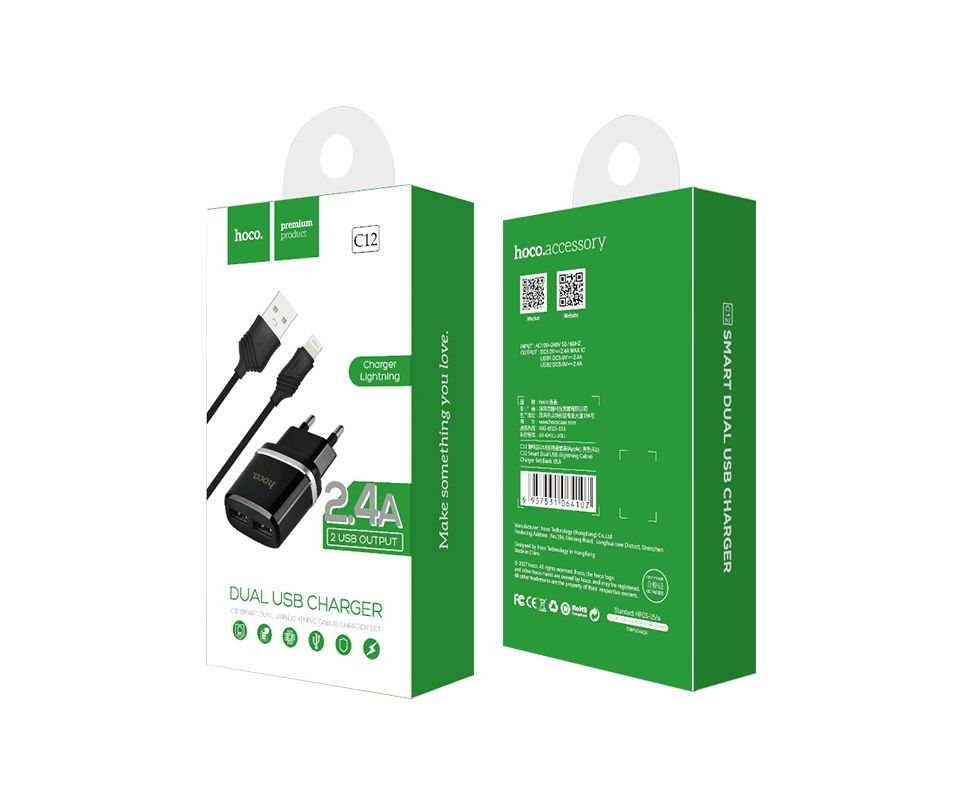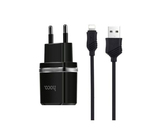СЗУ HOCO C12 series 2USB +Lightning 2.4A, черный (о)